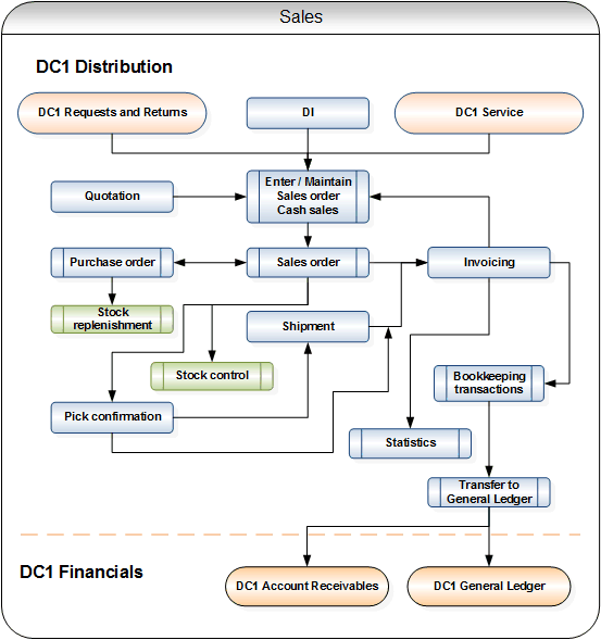 The Sales module encompasses the entire sales order processing cycle, which is very flexible and easy to use. It is fully integrated with stock control and, depending on the order type, both stock on hand and statistics are updated.