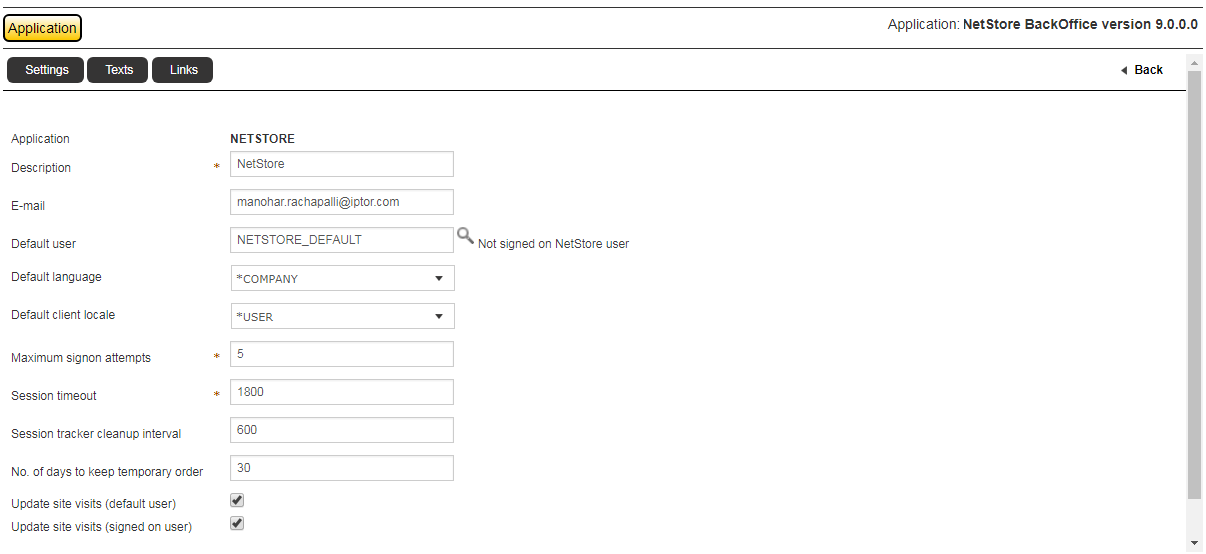 After the preload is run, the NetStore application is loaded with values. You can access the application and change any values.